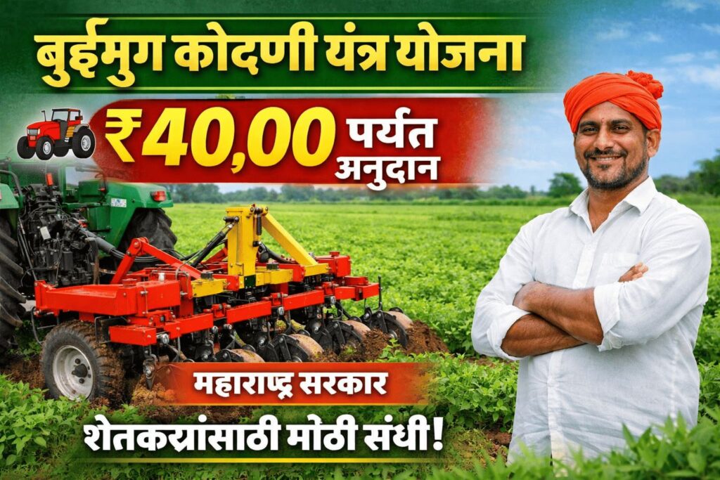 рд╢реЗрддрдХрд▒реНрдпрд╛рдВрдЪреЗ рд╢реНрд░рдо рдХрдореА рдХрд░реВрди рдкреЗрд░рдгреА рдЕрдзрд┐рдХ рдЕрдЪреВрдХ рд╡ рд╡реЗрд│реЗрдд рдХрд░рдгреНрдпрд╛рд╕рд╛рдареА рдорд╣рд╛рд░рд╛рд╖реНрдЯреНрд░ рд╢рд╛рд╕рдирд╛рдорд╛рд░реНрдлрдд рдмреБрдИрдореБрдЧ рдХреЛрджрдгреА рдпрдВрддреНрд░ рдпреЛрдЬрдирд╛ рд░рд╛рдмрд╡рд▓реА рдЬрд╛рддреЗ. рдпрд╛ рдпреЛрдЬрдиреЗрдЕрдВрддрд░реНрдЧрдд рд╢реЗрддрдХрд▒реНрдпрд╛рдВрдирд╛ рдЖрдзреБрдирд┐рдХ рдмреБрдИрдореБрдЧ (Seed Drill / Kodani Yantra) рдЦрд░реЗрджреАрд╕рд╛рдареА тВ╣40,000 рдкрд░реНрдпрдВрдд рдЕрдиреБрджрд╛рди рджрд┐рд▓реЗ рдЬрд╛рддреЗ.