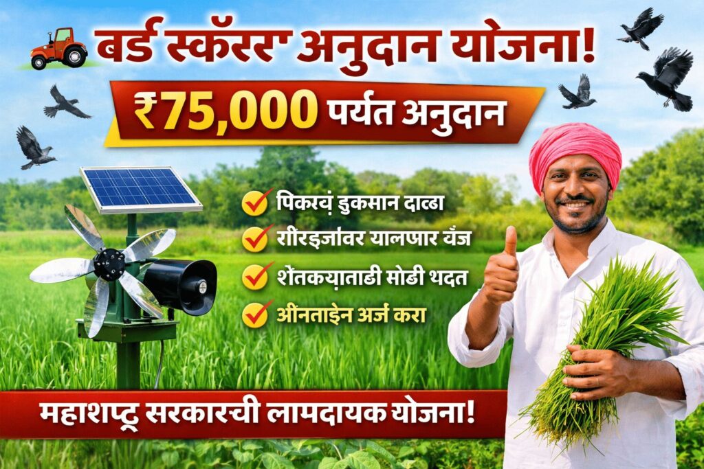 рдмрд░реНрдб рд╕реНрдХреЕрд░рд░ рдЕрдиреБрджрд╛рди рдпреЛрдЬрдирд╛ (тВ╣75,000 рдкрд░реНрдпрдВрдд) рд╣реА рд╢реЗрддрдХрд▒реНрдпрд╛рдВрд╕рд╛рдареА рдЕрддреНрдпрдВрдд рдЙрдкрдпреБрдХреНрдд рдпреЛрдЬрдирд╛ рдЖрд╣реЗ. рдкрд┐рдХрд╛рдВрдЪреЗ рд╕рдВрд░рдХреНрд╖рдг рдХрд░реВрди рдЙрддреНрдкрд╛рджрди рд╡рд╛рдврд╡рдгреНрдпрд╛рд╕рд╛рдареА рд╣реА рдпреЛрдЬрдирд╛ рдирдХреНрдХреАрдЪ рдлрд╛рдпрджреЗрд╢реАрд░ рдард░рддреЗ. рд╡реЗрд│реЗрдд рдЕрд░реНрдЬ рдХрд░реВрди рдпрд╛ рдпреЛрдЬрдиреЗрдЪрд╛ рд▓рд╛рдн рдШреНрдпрд╛.